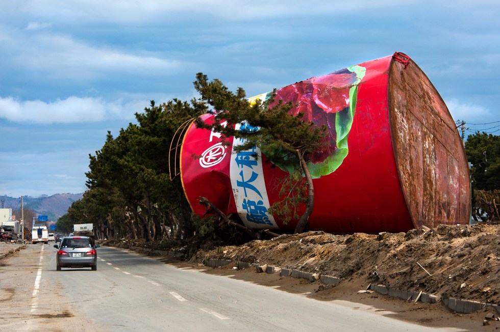 国道45号線に転がっていた巨大なオブジェ。缶詰工場の看板だったという。