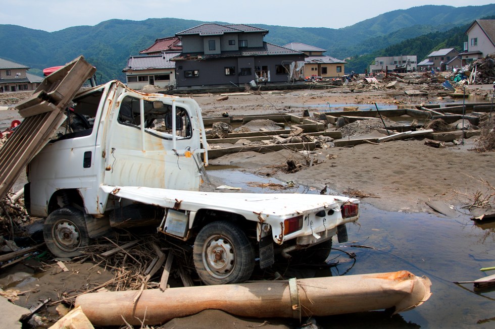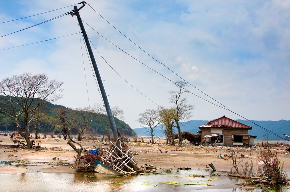 ところどころに残る人々の気配が津波のすさまじさを物語る。