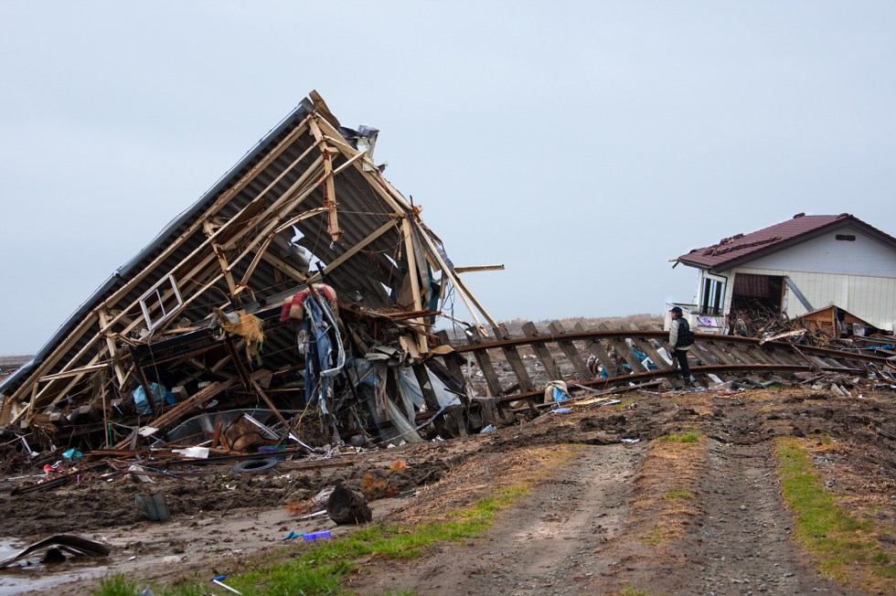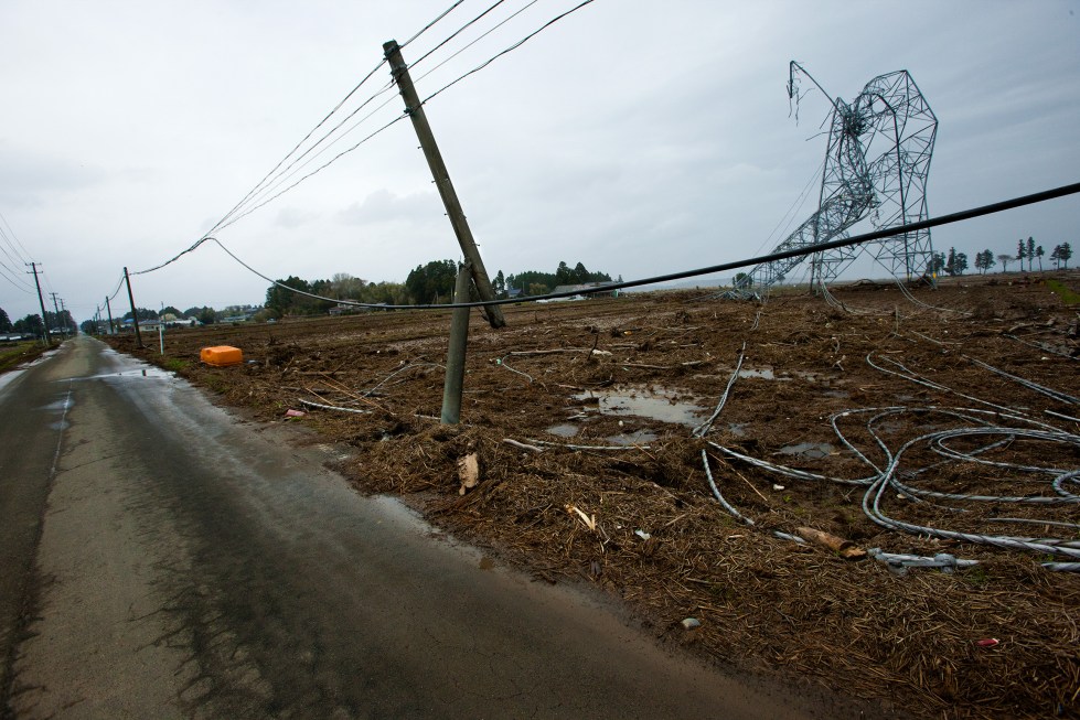 溶けた飴のように折れ曲がった鉄塔。地面を這いまわる送電線。折れた電柱。何もかもが普通ではない。